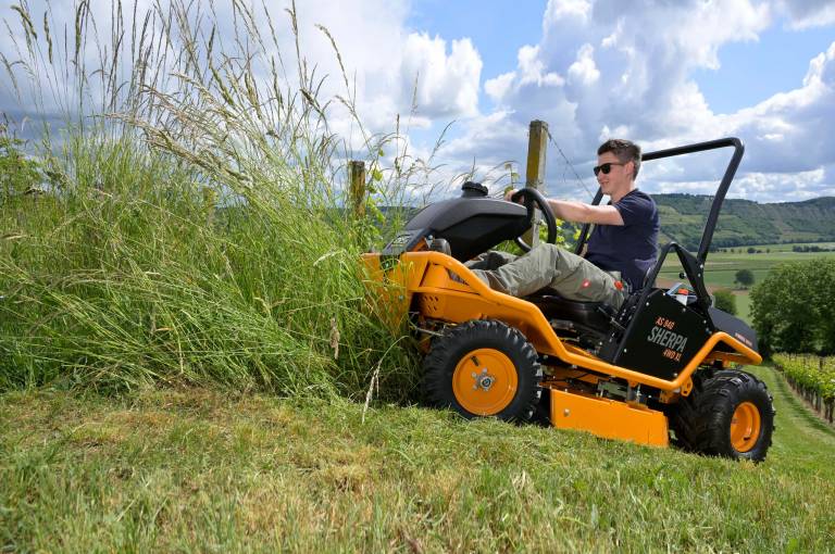 High-grass, ride-on mower with permanent all-wheel drive and more ground clearance